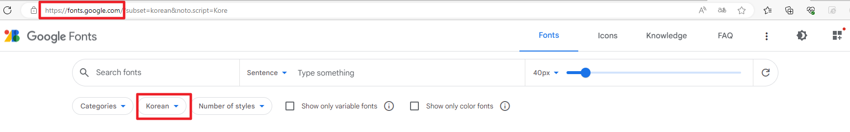 참고: 구글폰트 입력 방법 안내 - 웹폰트 사용 가능한곳에 접속후 (예시 : 구글 )