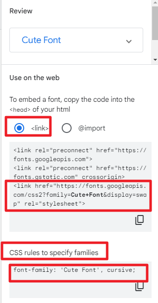 <link href="https://fonts.googleapis.com/css2?family=Cute+Font&display=swap" rel="stylesheet">