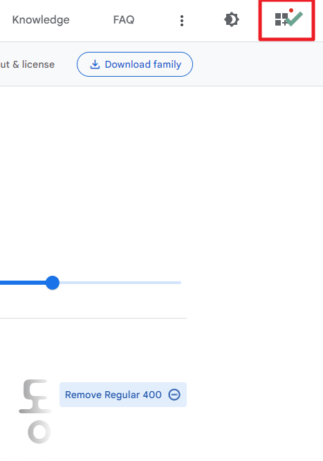 해당 글꼴 선택후 오른쪽 select regular 400+를 선택후 체크한 네모를 클릭