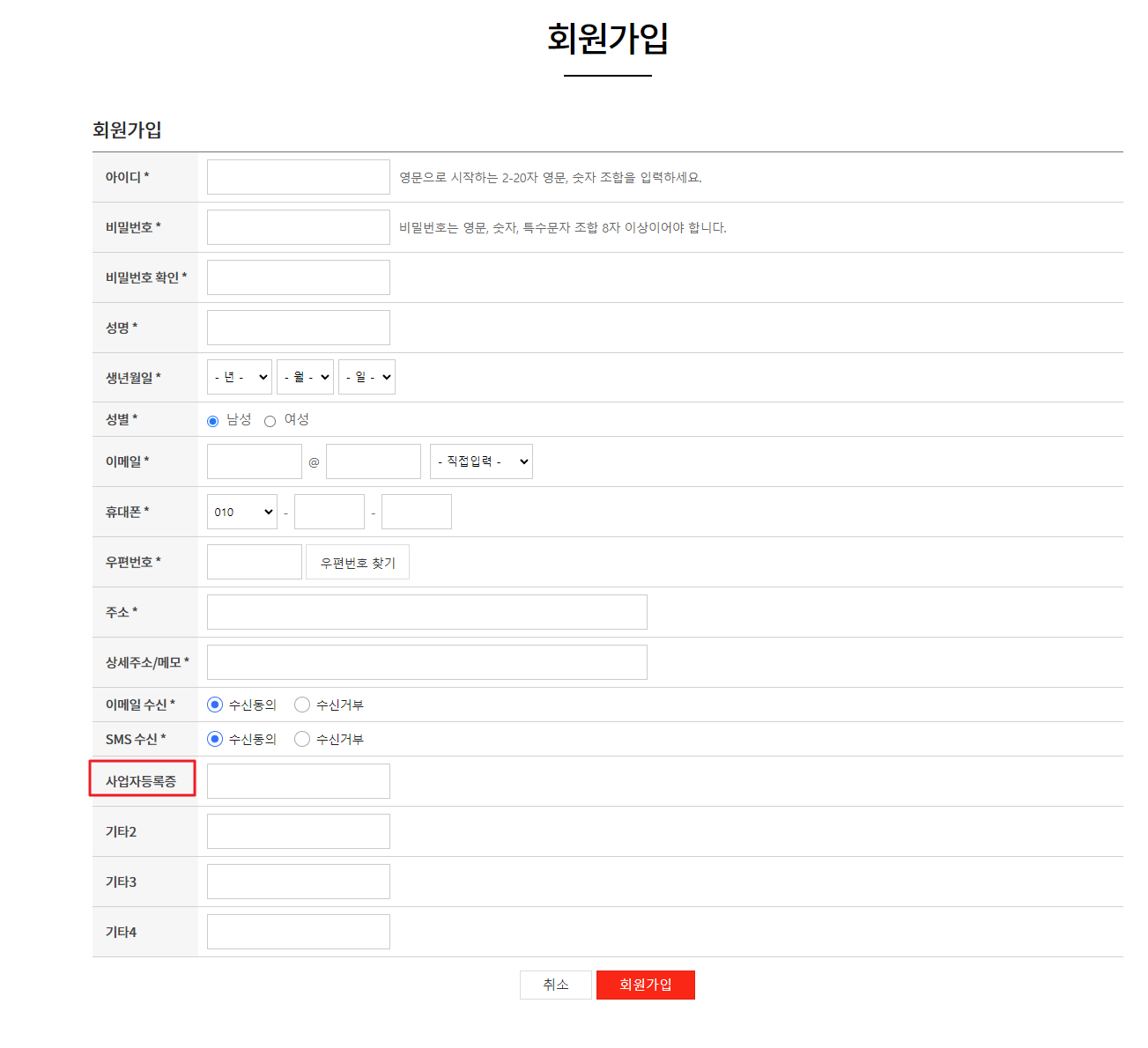 추가된 항목은 필수값이 아니여서 기입을 안하셔도 기존처럼 회원가입 가능합니다.