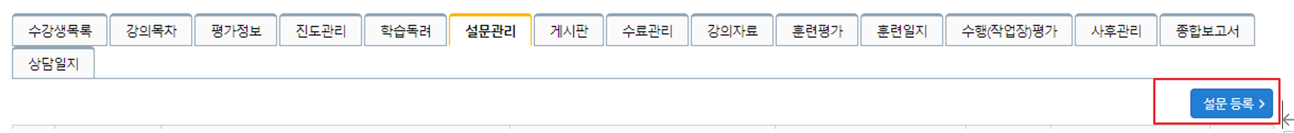 *각 과정운영 설문관리 > 설문 등록