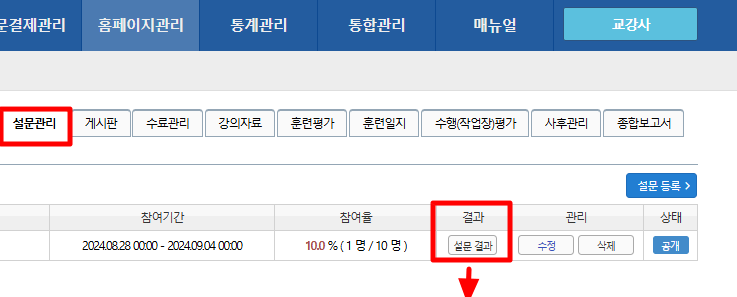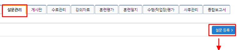 각 과정운영 > [해당 과정명 ] > 설문관리 > 설문등록 ( 설문등록마다 설정 )