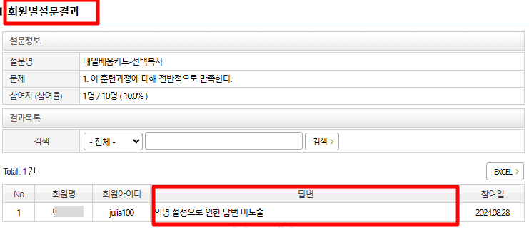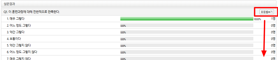 설문결과 - 문항별 [ 회원별 보기 ] 클릭