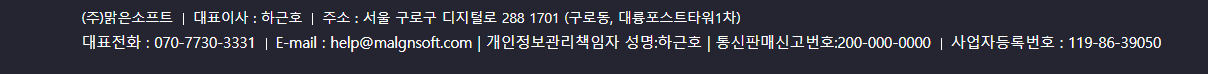 3. 홈페이지 푸터(하단)에 다음과 같이 모두 기입 되어야 합니다.