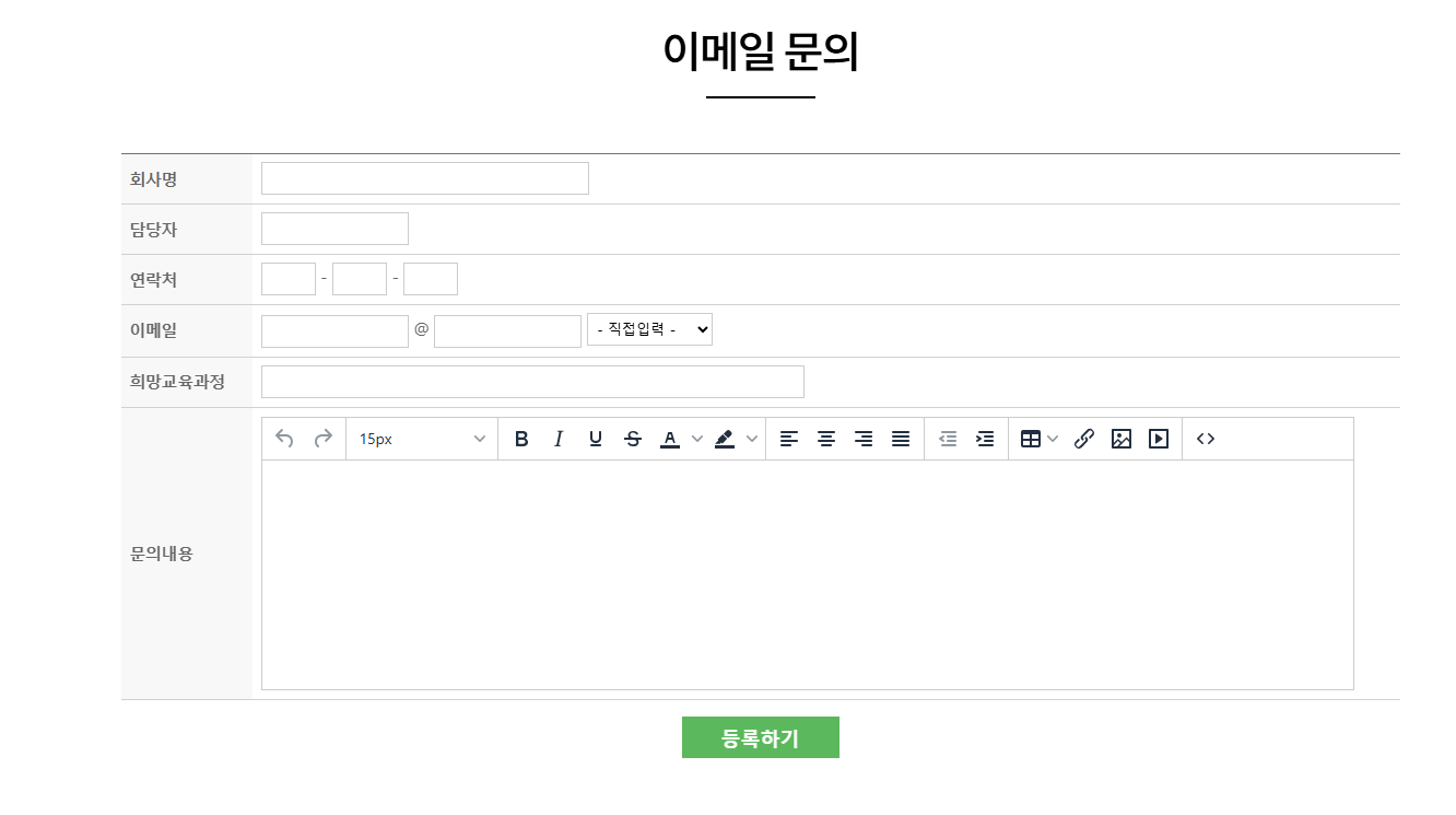 기능 추가 요청: 폼메일 기능 사용을 원하시는 훈련기관은 고객센터로 문의해 주시면 추가 설정을 도와드리겠습니다.