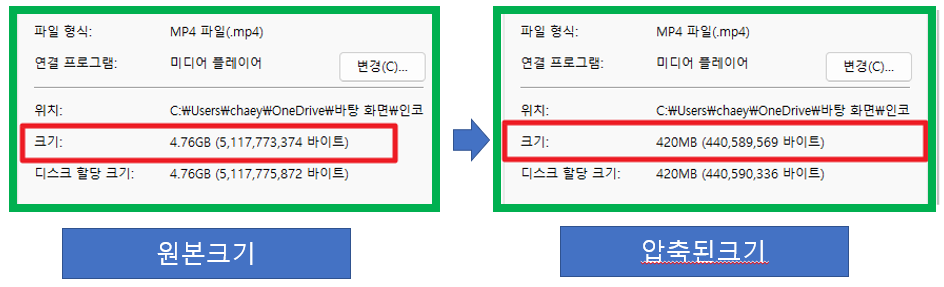 아래 원본파일정보를 보면 가장 문제되는 부분은 비디오(코덱-형식): mpeg4(mp4v)로 되여 있으면 영상출력이 안되여 H264로 변경해줘야 합니다.